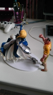 そこでセイバーたんの、フィギア?フィギュア?(どっちかな?)。買いました(^o^)剣、やらこいけどカッコイイ!!!クレイトンも誇らしげです